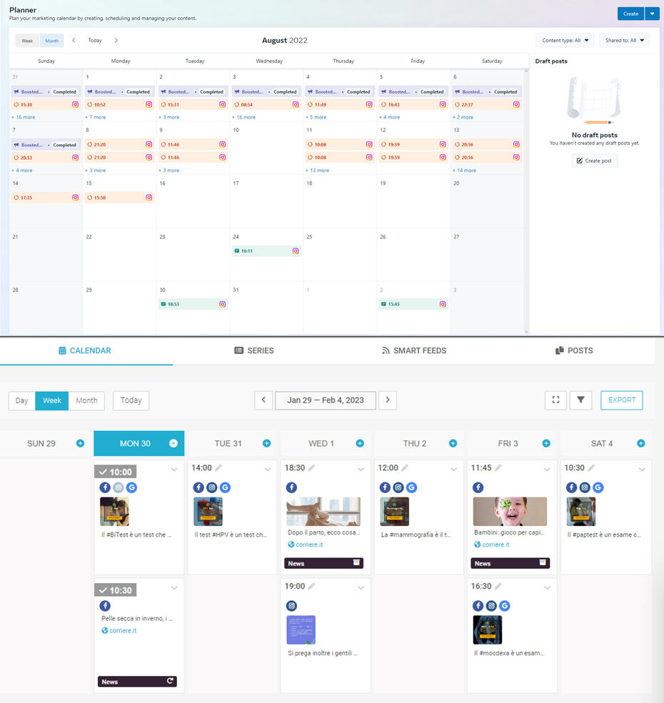 Esperienza nell'utilizzo del planners di Meta Business suite e postpickr per lo scheduling del contenuto sulle pagine social.